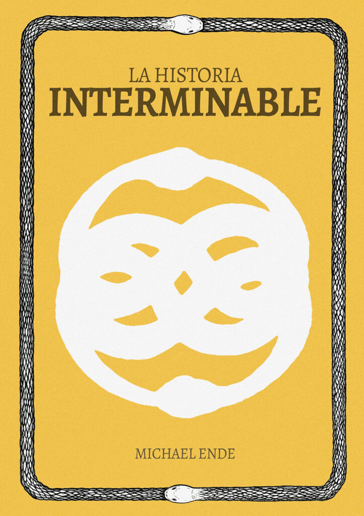 La portada aposta per una solució senzilla i molt directa: fons groc i el símbol de l’Auryn al centre com a element únic i protagonista, amb un motiu de dues serps entrellaçades que l’envolta (fet a tinta tradicional).