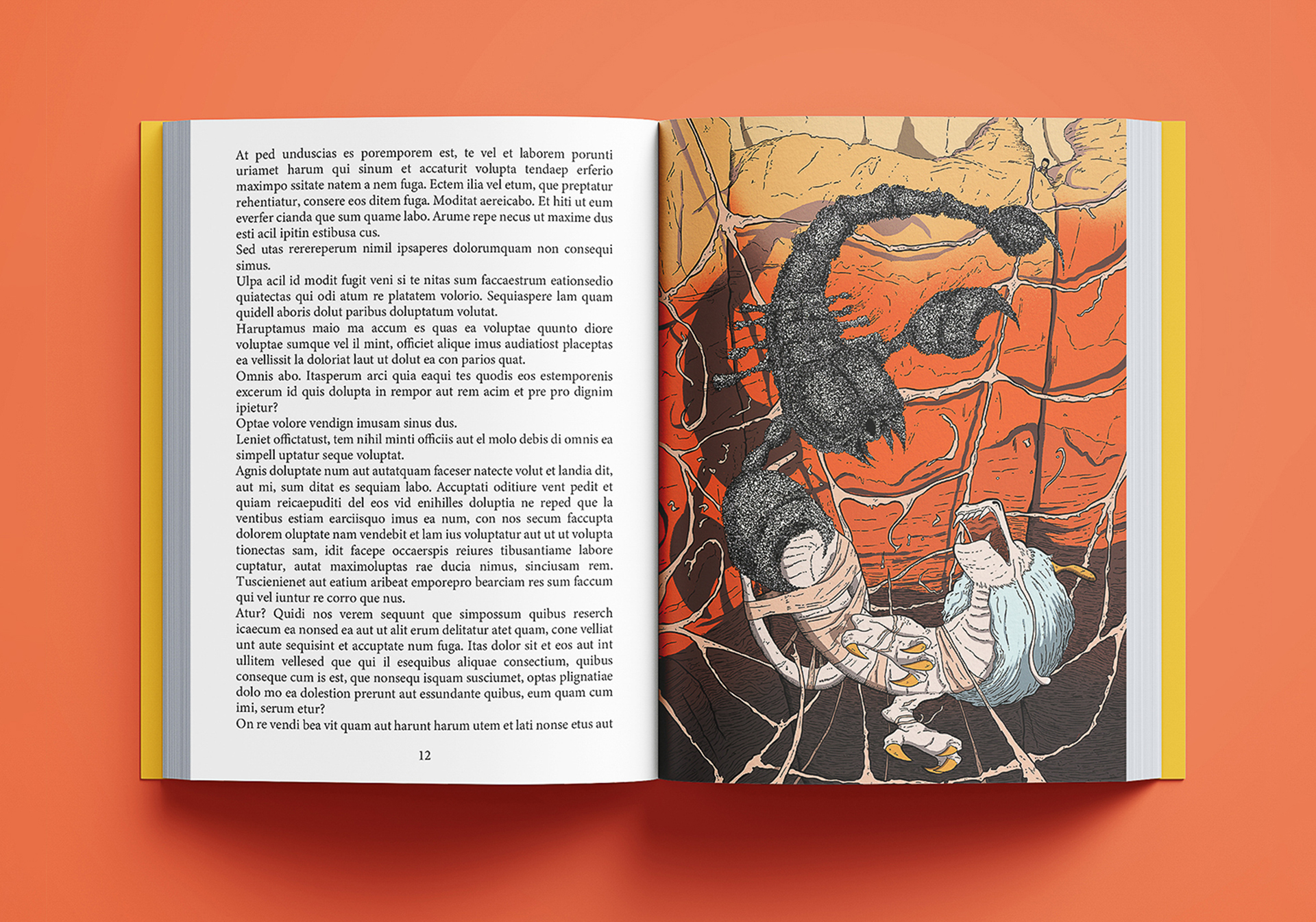 Les il·lustracions interiors parteixen d’un procés tècnic combinat que uneix treball manual i acabat digital.